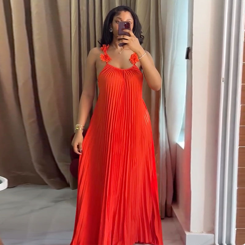 European and American Women’s Clothing 2026 Spring New Sweet and Fresh Spaghetti Strap Backless Pleated Long Dress