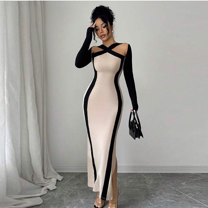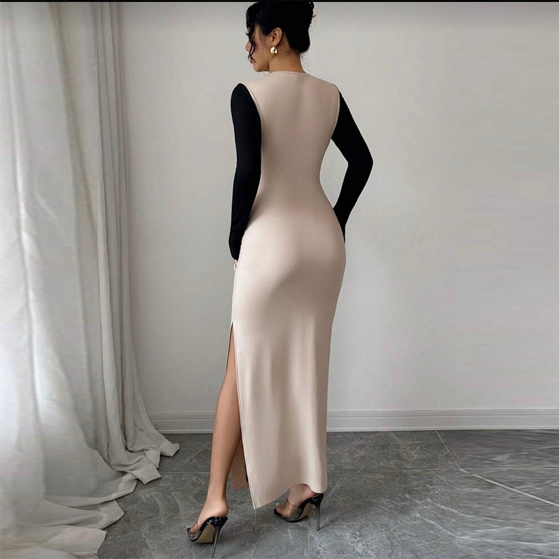 2025 Autumn European and American New Niche Color-Blocked Bodycon