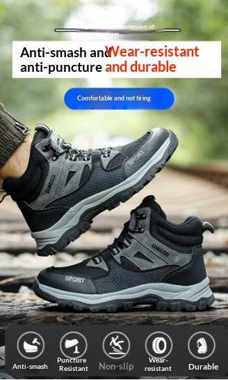 High-top Labor Protection Shoes With Anti-smashing Puncture-resistant And Abrasion-resistant Safety Features